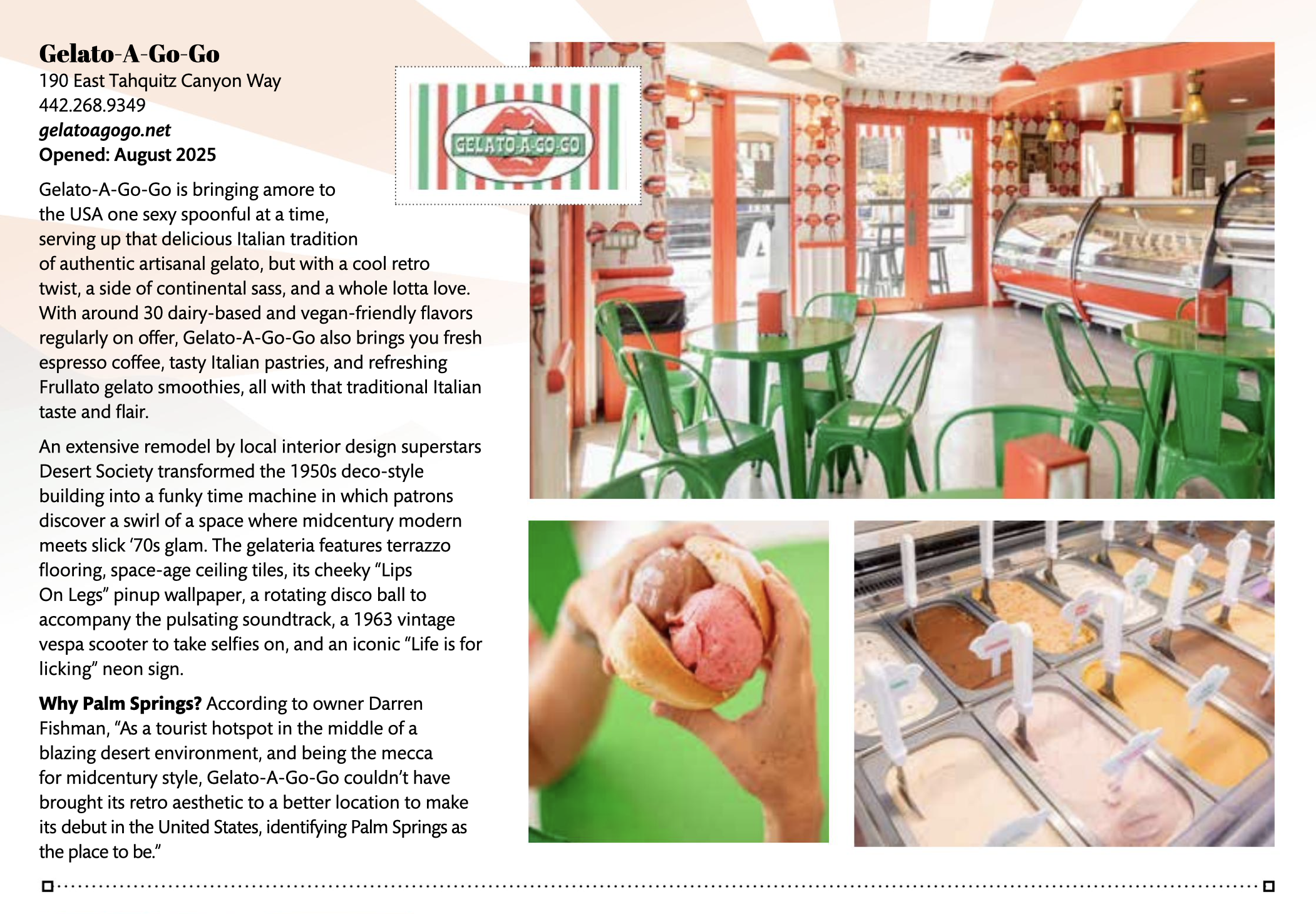 I Media Gelato-A-Go-Go in the media People love talking about us! Check out the media exposure we’ve received below… Desert SunMay 6, 2025 What NowMay 15, 2025 Desert SunAugust 21, 2025 Palm Springs TribuneAugust 25, 2025 Palm Springs GuysSeptember 4, 2025 Squad MagazineSeptember 10, 2025 Palm Springs High SchoolSeptember 17, 2025 The MuseOctober 8, 2025 The Desert BrewDecember 3, 2025 PS I Love YouJanuary 7, 2026